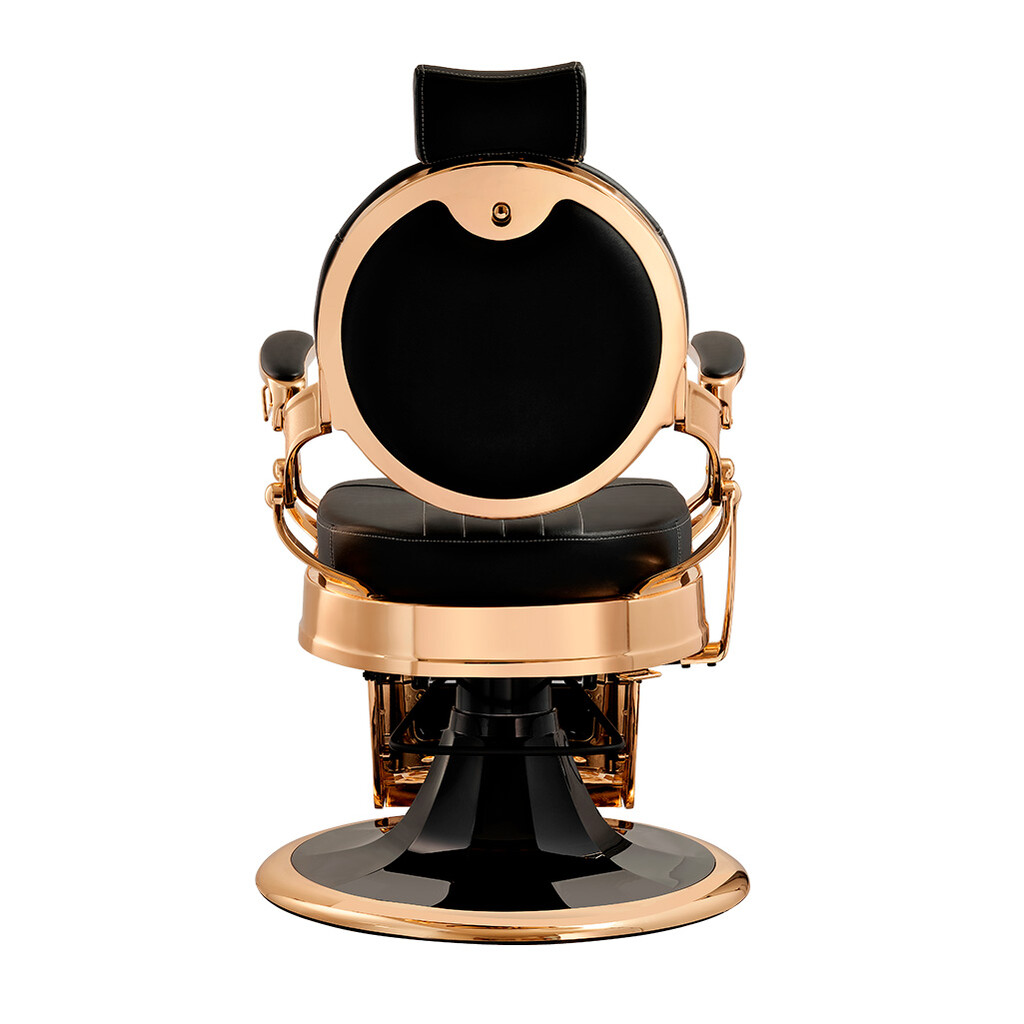 Luxuriöser Friseurstuhl, der sowohl auf Stil als auch auf Komfort ausgelegt ist. Der Stuhl verfügt über einen robusten Vollmetallrahmen aus gespritztem Aluminium, der für maximale Stabilität und Haltbarkeit sorgt. Das elegante Goldchrom-Finish verstärkt das hochwertige Gefühl des Stuhls und verleiht ihm ein anspruchsvolles Aussehen, das zu jedem modernen Friseursalon passt.