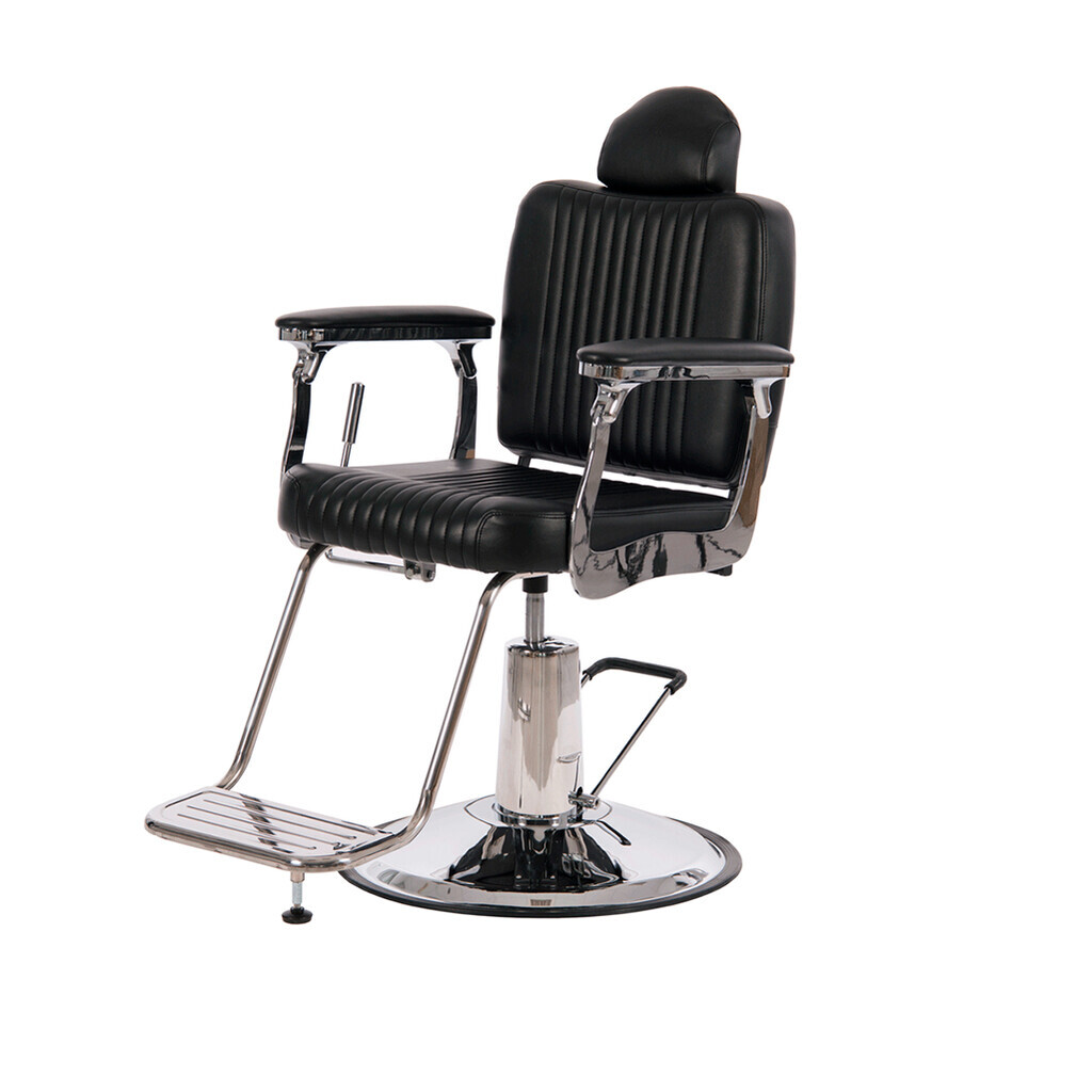 Preiswerter hydraulischer Schminkstuhl mit verstellbarer Rückenlehne und Drehsystem. Stuhl mit geraden Linien und entspanntem Design