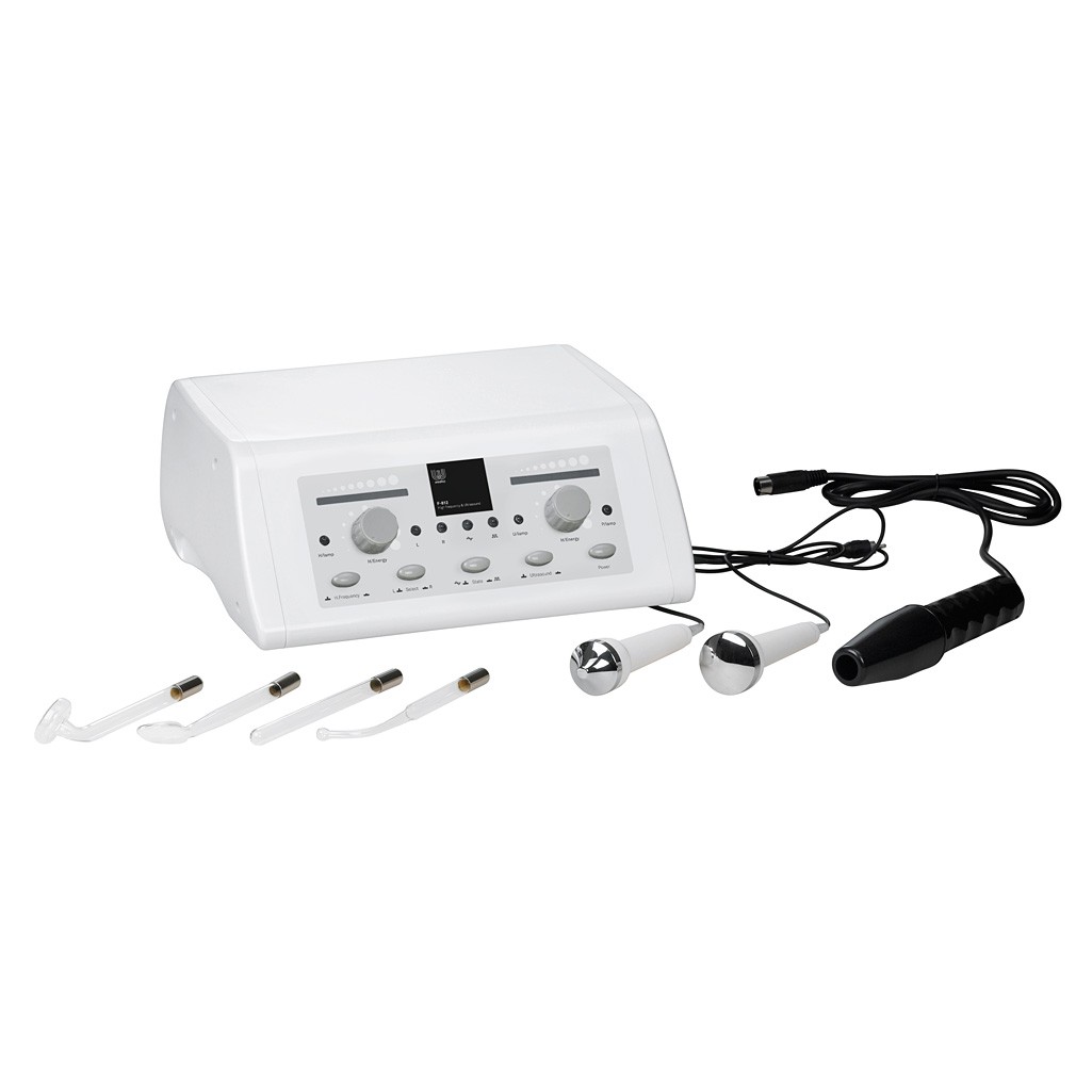 Zwei in einem Instrument. Es kombiniert Hochfrequenz- und Ultraschallfunktionen. Perfekt für tiefenreinigende Hautbehandlungen.